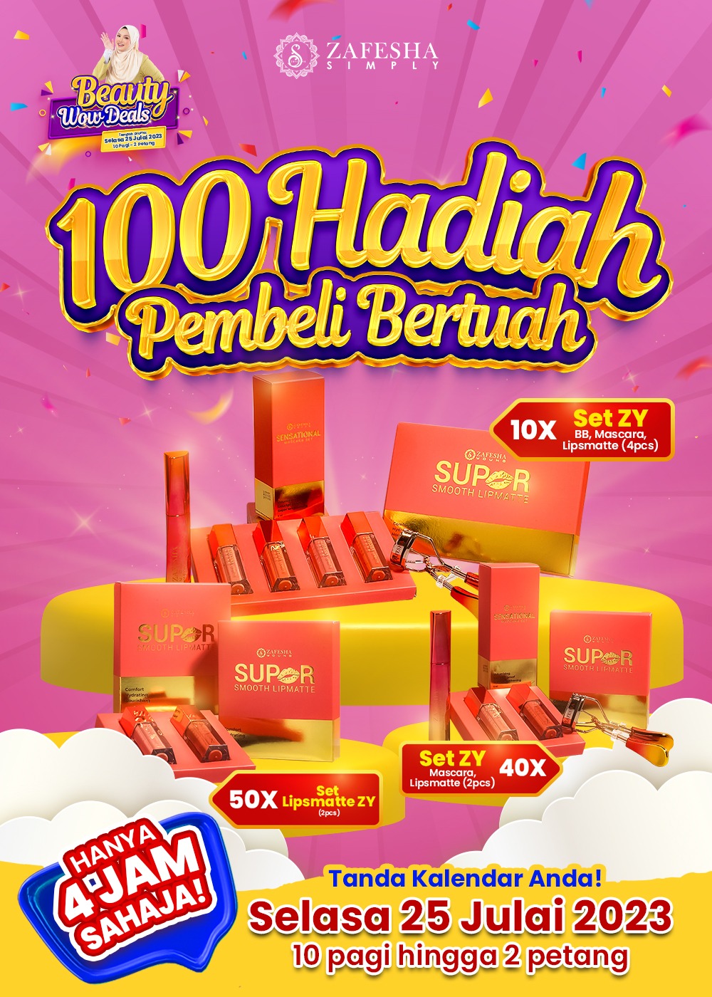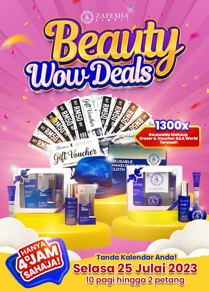 JUALAN PROMOSI 4 JAM BEAUTY WOW DEALS DIBUKA PADA 25 JULAI 2023 HARI SELASA TEPAT PUKUL 10.00 PAGI SEHINGGA 2.00 PETANG