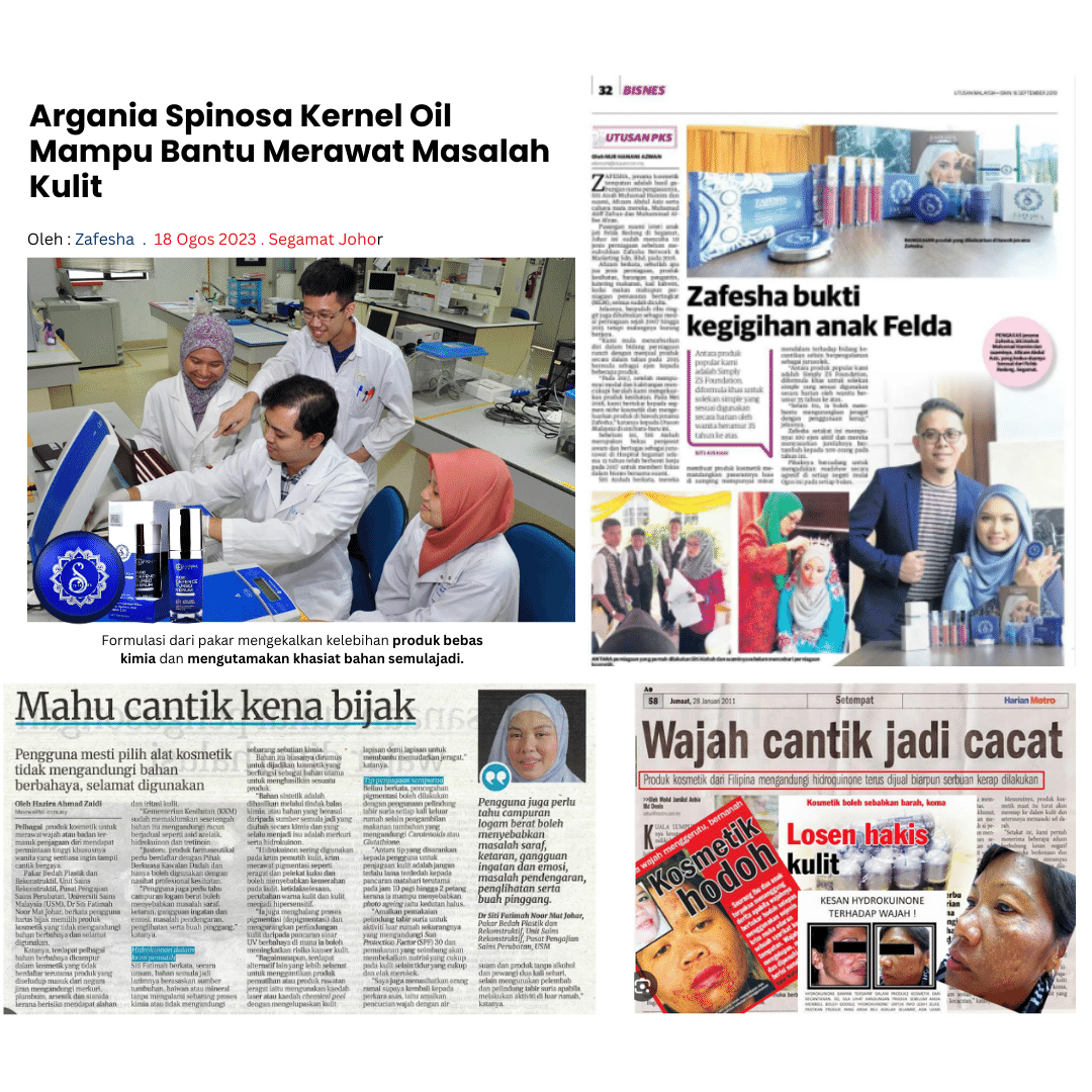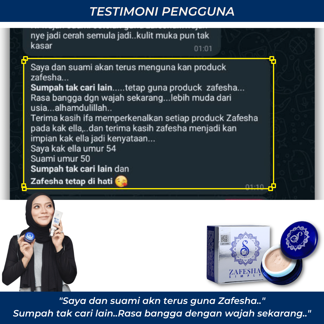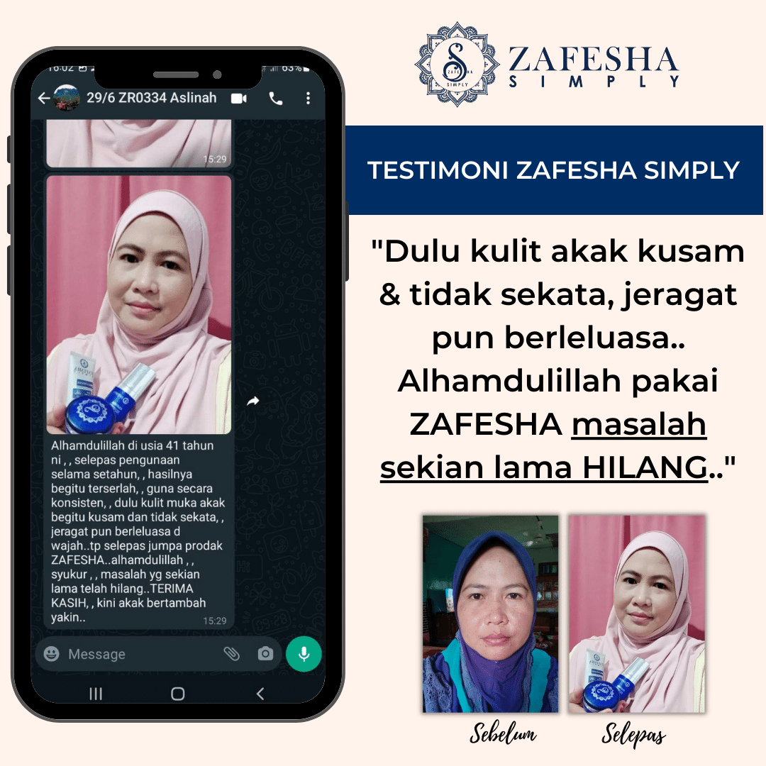 Zafesha dah bantu lebih 356, 876 pengguna seluruh Malaysia, Singapura dan Brunei meningkatkan penampilan diri dengan Zafesha disamping mampu beri perlindungan harian kepada kulit dan merawat masalah jeragat