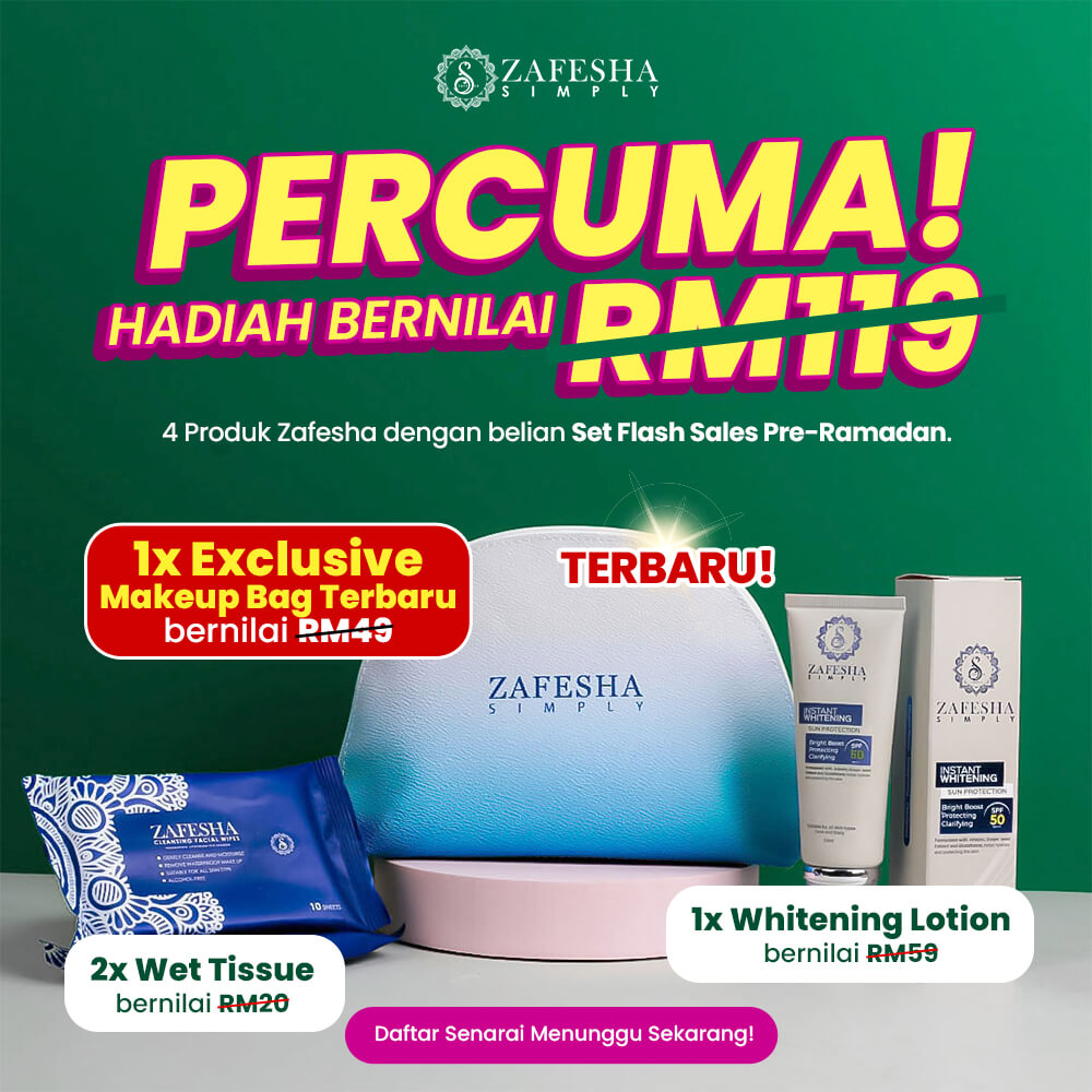 Pakej Flash Sale Pre-Ramadan kali ini khas untuk bantu akak dapatkan kulit glowing berseri dengan fungsi 'Double Cleanse' untuk