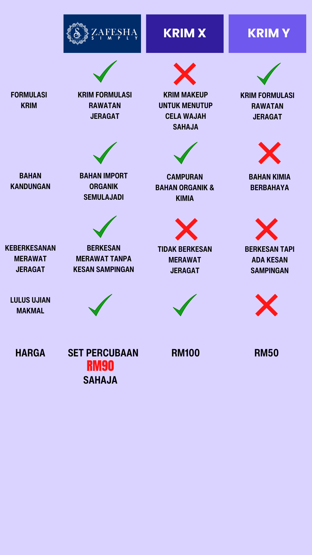 Berdasarkan 99% pengguna yang dah gunakan krim Zafesha. Mereka kongsikan sendiri kejayaan mereka dengan krim Zafesha