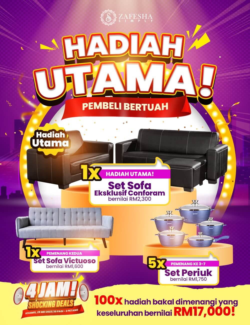 JUALAN PROMOSI 4 JAM SHOCKING DEALS ZAFESHA DIBUKA SEMULA PADA 26 MEI 2023 HARI JUMAAT TEPAT PUKUL 9.00 PAGI SEHINGGA 11.00 PAGI
