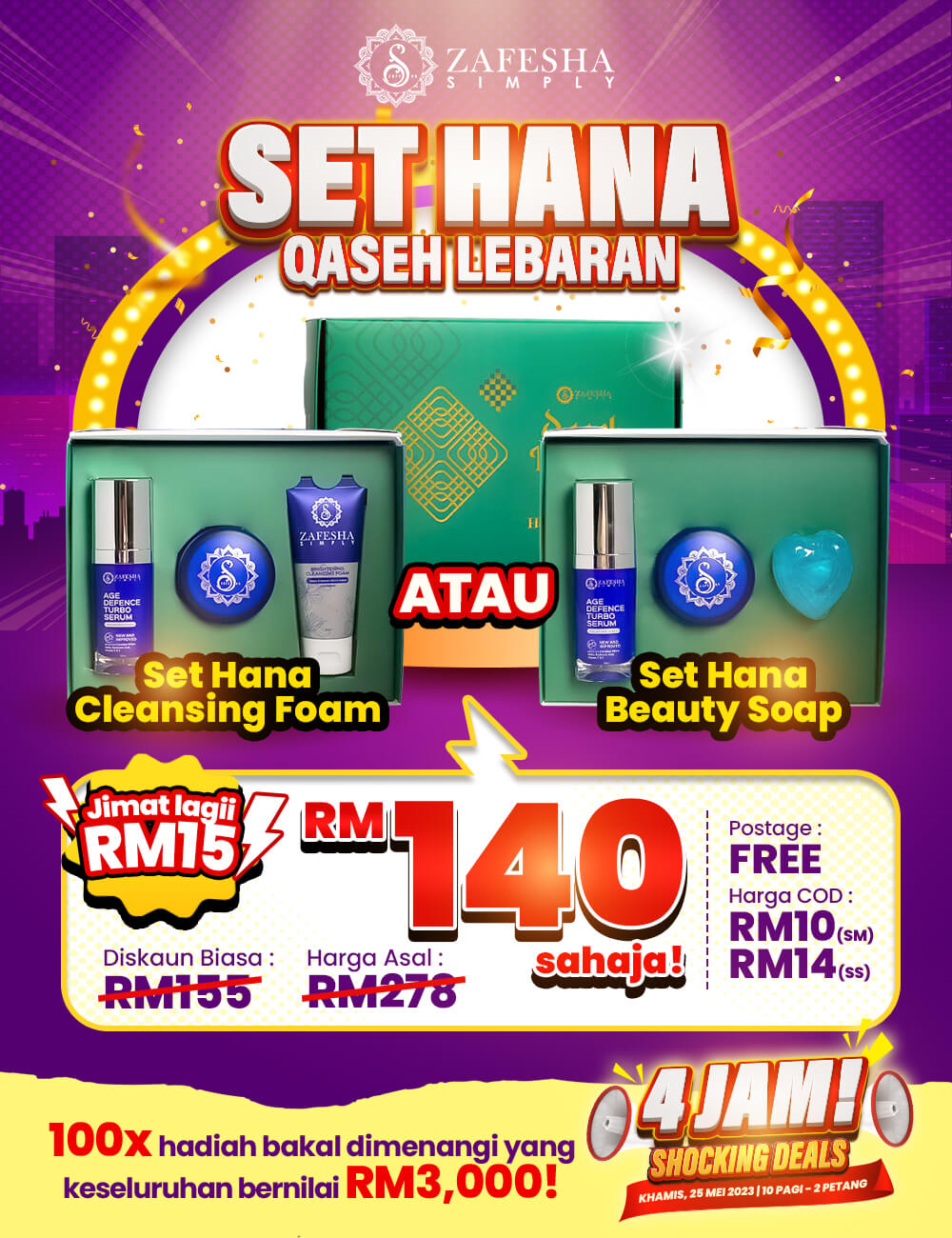 Harga Sempena 4 JAM SHOCKING DEALS ZAFESHA: RM140 SAHAJA!