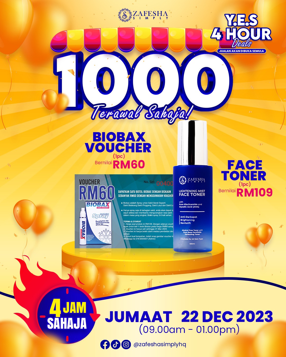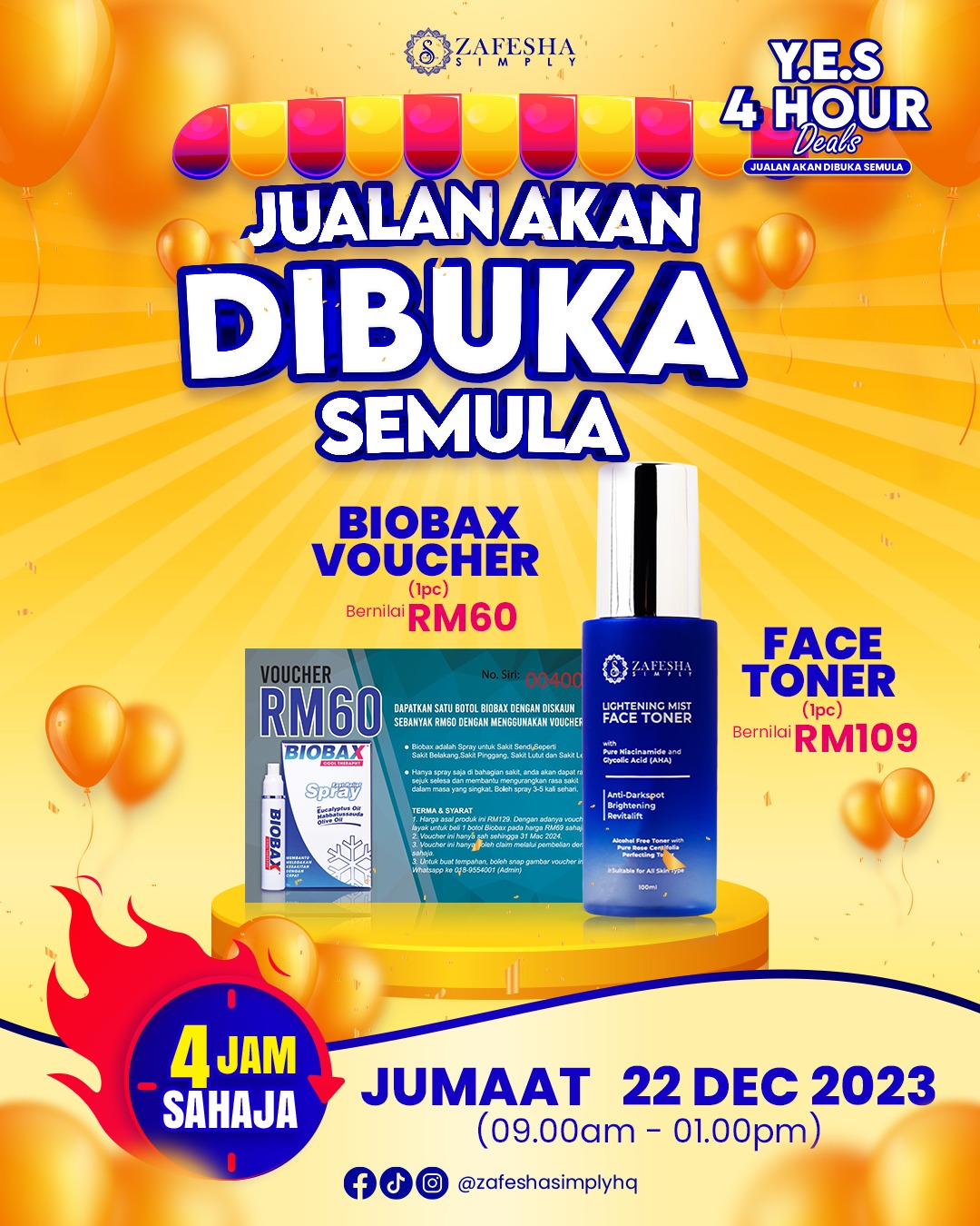JUALAN PROMOSI ZAFESHA Y.E.S 4 HOUR DEAL DIBUKA SEMULA DARI 19 DISEMBER 2023 SEHINGGA 22 DISEMBER 2023